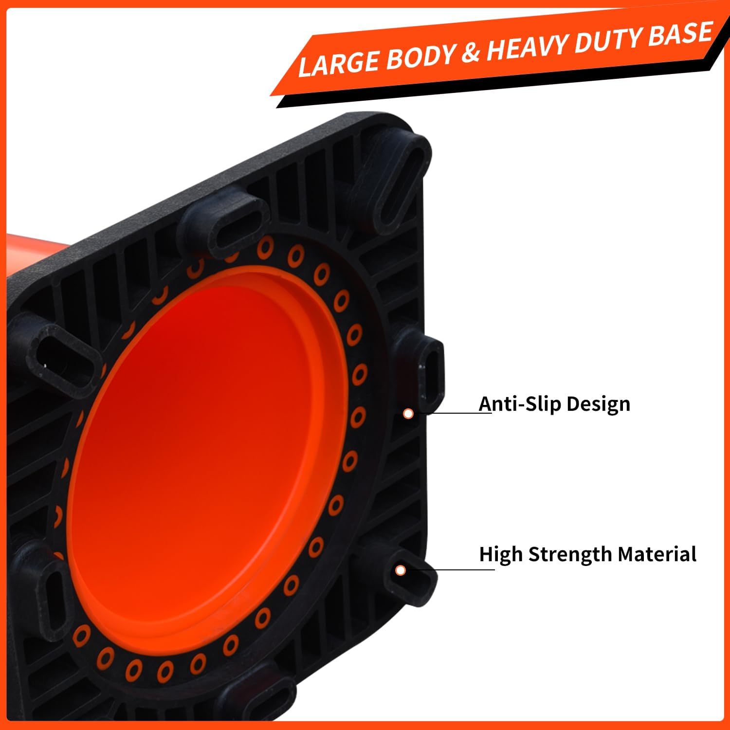 - Visibility: High Intensity Reflective Film, Each traffic cone has two high intensive reflective collars( 4" & 6" ) ensure 360 degree visibility day and night, even in rain, snow, fog, hail or other bad weather