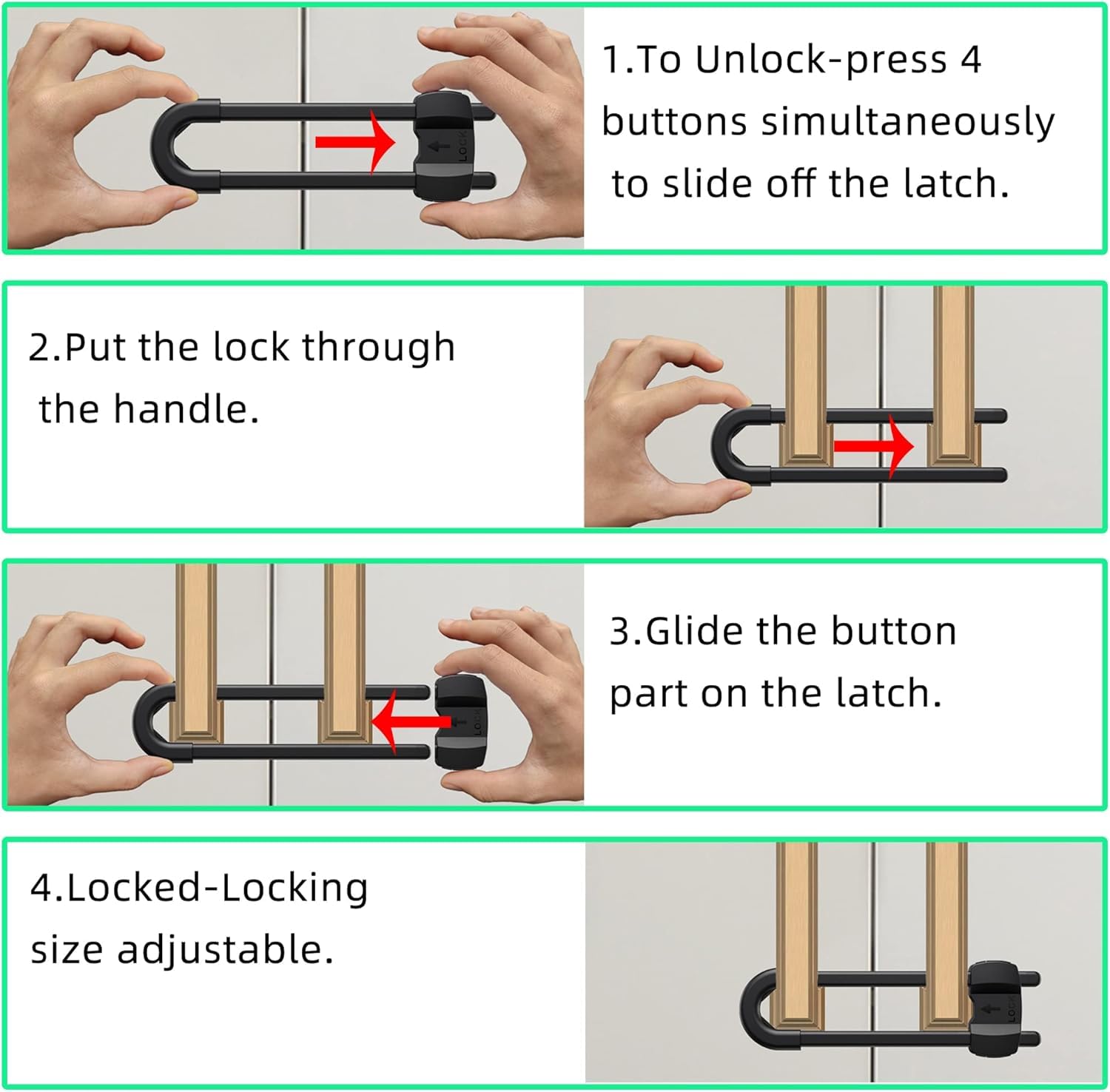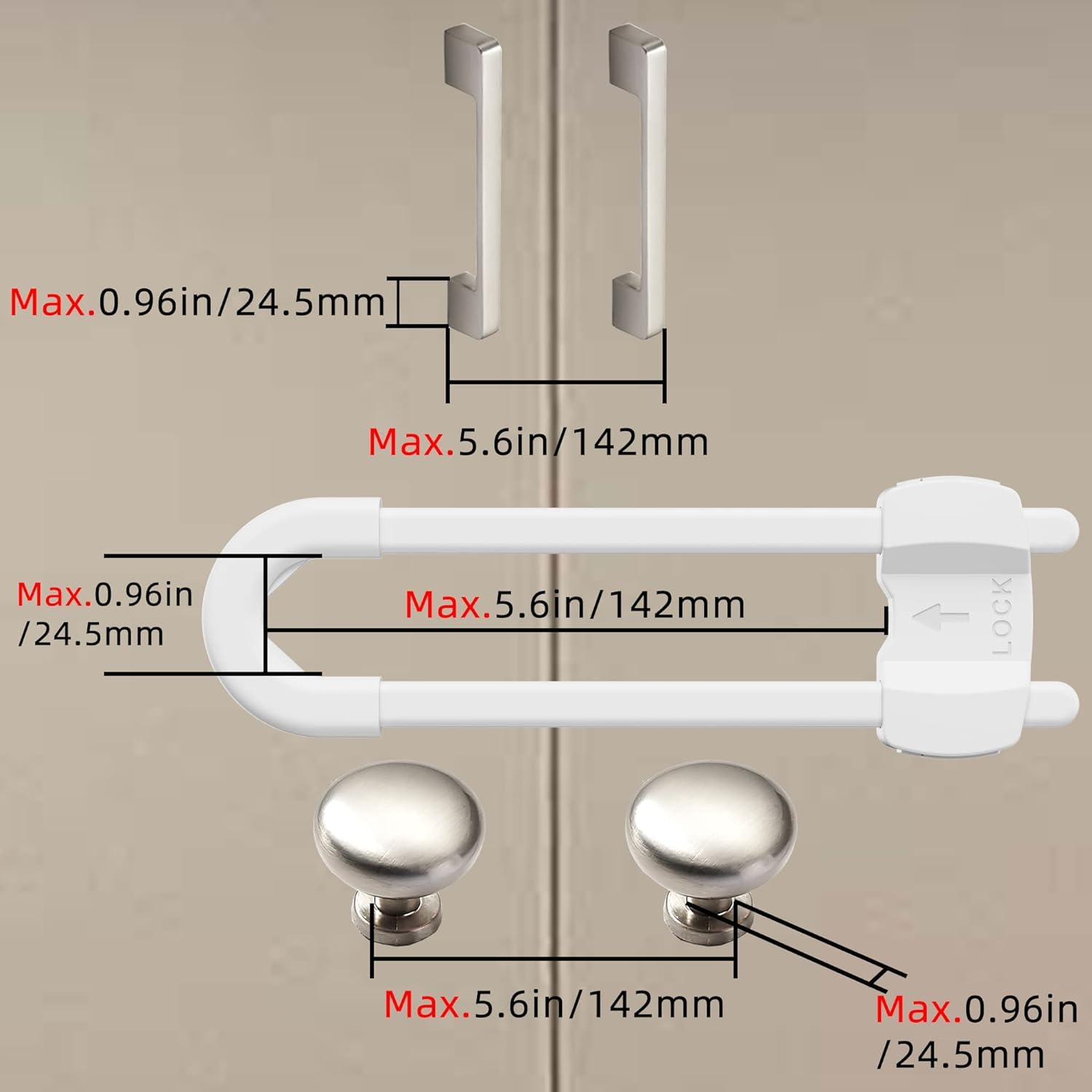 - 【Multipurpose Use】For Knobs & Handles witch on Wardrobe,Kitchen,Bathroom,Drawer,Fridge,storage doors,Cupboard Doors, pantries, bedrooms,and more. Safely keeping curious babies and pets be away from where Sliding Cabinet Locks were used.And these sliding cabinet locks, reusable and convenient.