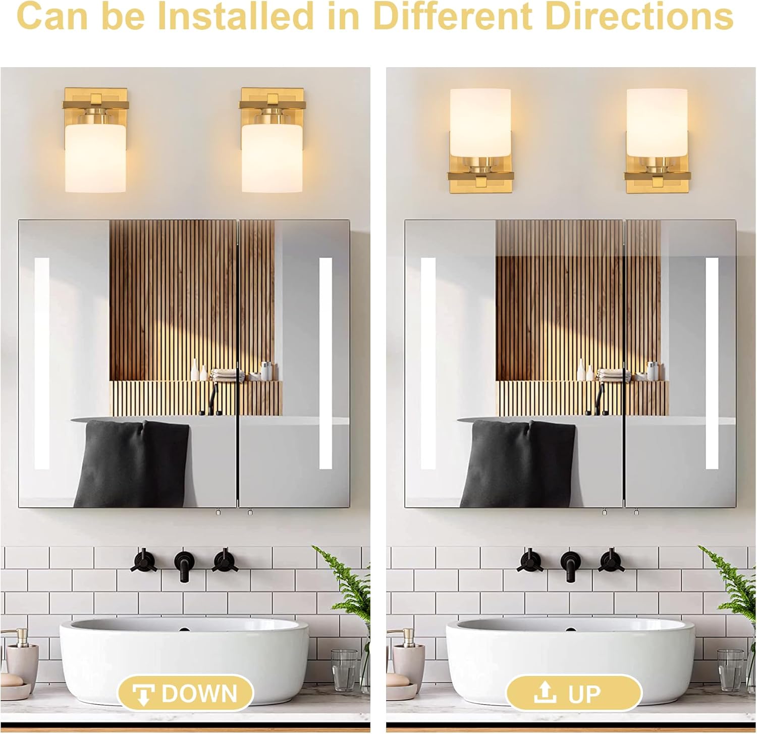 - 【Easy to Install】Vanity wall sconces are lights that are mounted to your wall. Vanity lights for bathroom can be installed in an upwards or downwards position. It's equipped with all the mounting hardware required for install. You can easily install it by referring to the user manual, only takes you a few minutes to finish.