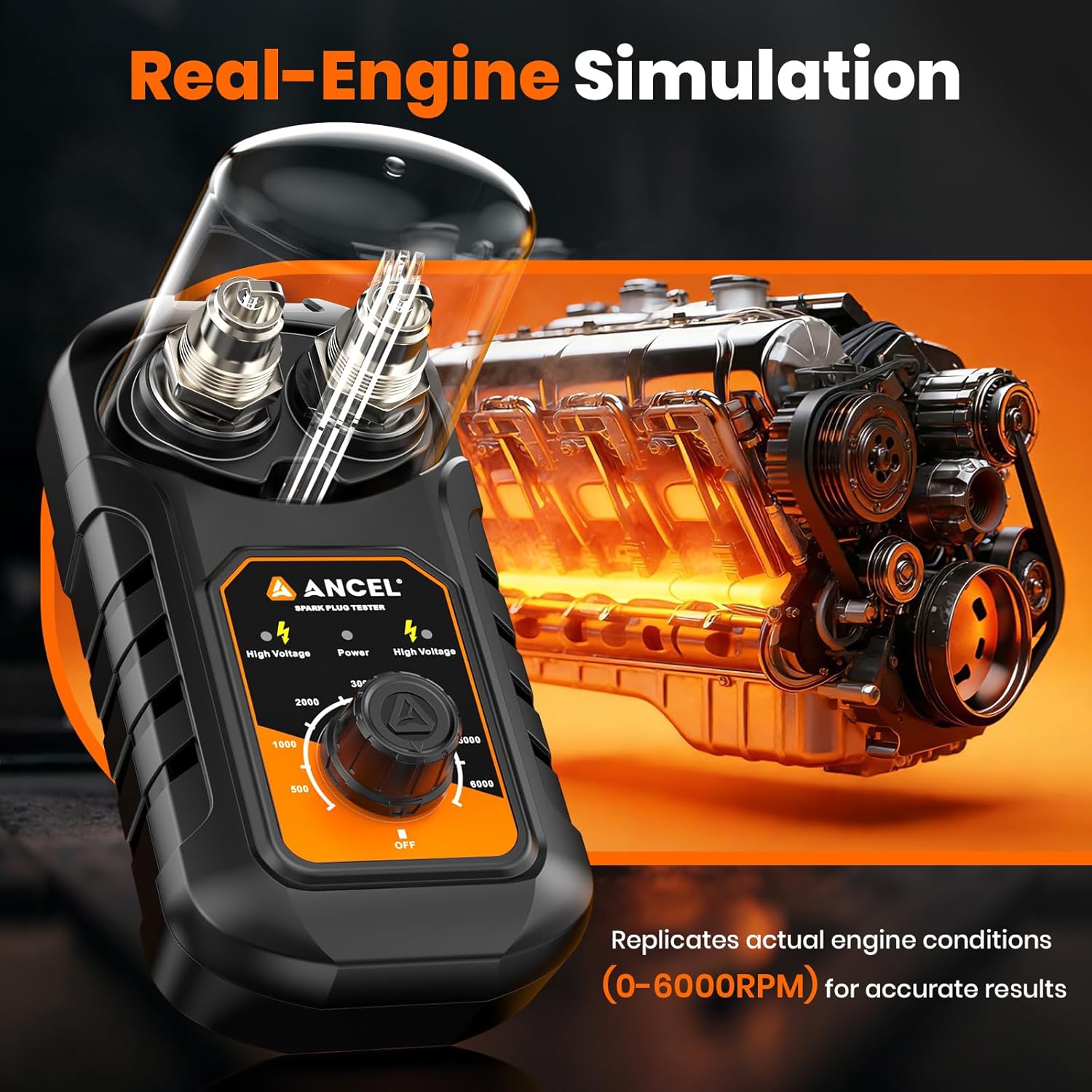 - 【Simulates Real Engine Ignition – Adjustable Up to 6000 RPM】No complex setup—just insert the spark plug and turn the dial. ANCEL SP21 spark plug tester simulates actual ignition behavior and allows fine-tuned RPM adjustment (0–6000 RPM) for accurate performance checks. Tip: 2000 RPM is often sufficient for testing most spark behavior